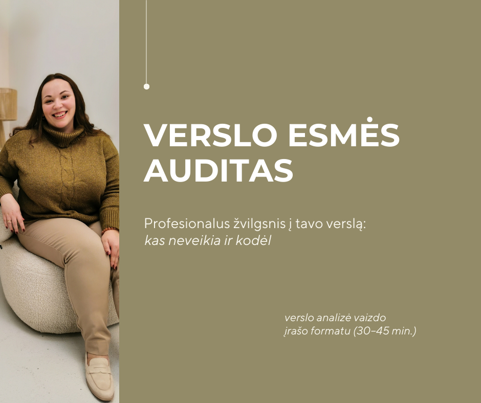 Tai nėra apie darymą daugiau ar klaidų taisymą. Tai apie tave – aiškiau matančią situaciją ir save, galinčią ramiau pasirinkti ir kuriančią verslą pagal savą krytį.